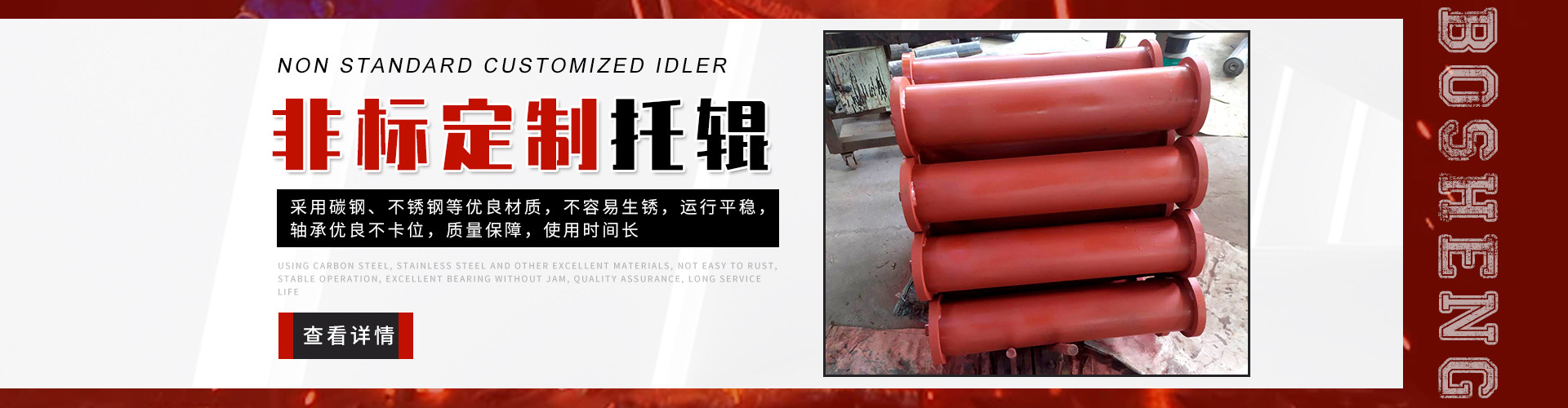 泰安博晟礦山機(jī)械有限公司位于山東泰安新泰市汶南鎮(zhèn)陳糧村。緊鄰京滬、京福、萊新高速公路。公路交通極為方便,環(huán)境優(yōu)美。公司主要生產(chǎn):托輥、托輥配件、托輥支架等皮帶輸送機(jī)配件。歡迎各界商友前來洽談考察。聯(lián)系電話:13954880316. 泰安博晟礦山機(jī)械有限公司采用國際標(biāo)準(zhǔn)設(shè)計(jì)、制造技術(shù),將托輥的設(shè)計(jì)和制造提高到了一個(gè)更高的水平,生產(chǎn)的托輥具有小的旋轉(zhuǎn)阻力,長(zhǎng)的壽命,小的維修工作量和高的承載能力。鋼管采用托輥專用高頻焊管,管內(nèi)做去刺處理,圓度控制在特殊的公差范圍之內(nèi)。軸是按標(biāo)準(zhǔn)公差加工的冷拉鋼制造。軸承座采用進(jìn)口冷扎鋼板經(jīng)多次工藝沖壓而成。托輥管和軸承座被自動(dòng)焊接機(jī)械手焊接在一起,形成一個(gè)具有很高強(qiáng)度的整體構(gòu)造。托輥軸承采用國內(nèi)外知名品牌的大游隙深溝球雙密封軸承,使托輥具有理想的靜平衡和動(dòng)平衡,其旋轉(zhuǎn)阻力優(yōu)于國標(biāo)。托輥密封采用綜合國外和國內(nèi)迷宮式密封的特點(diǎn)進(jìn)行了專門設(shè)計(jì),內(nèi)充耐高速高溫和超低溫抗氧化鋰基酯,有效防止雜質(zhì)、水、空氣對(duì)托輥內(nèi)部的侵蝕。 目前我們托輥系列產(chǎn)品有槽形上調(diào)心托輥組、槽形托輥、槽形下調(diào)心托輥組、承載托輥、緩沖托輥、回程托輥組、螺旋托輥、摩擦上調(diào)心托輥組、平行緩沖托輥組、平行上調(diào)心托輥、礦用托輥、煤礦專用托輥、梳型托輥、樹脂托輥、陶瓷托輥、橡膠托輥、錐形托輥、立輥等。規(guī)格:直徑50-219mm;長(zhǎng)度190-2600mm。 泰安博晟礦山機(jī)械有限公司竭誠愿與廣大客戶合作,共同發(fā)展開發(fā)新技術(shù)新項(xiàng)目。泰安博晟礦山機(jī)械有限公司秉承
